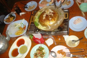 Ein weiteres Highlight der Thai-Küche waren die tollen Sachen vom Grill: Direkt am Strand auf Ko Lanta gab es diesen sehr guten gegrillten Fisch. In Bangkok wiederum haben wir Stunden in einem Thai Barbecue mit Tischgrill zugebracht und einfach nur gefuttert (Tipp: das Restaurant liegt nicht weit vom Skytrain Victory Monument, einfach die Straße ein wenig vom Monument weg laufen).