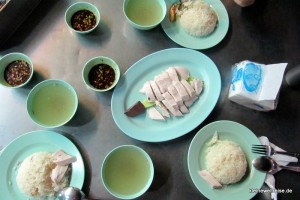 Gleich an unserem ersten Abend in Bangkok haben wir DAS traditionelle Straßenküchen-Gericht ausprobiert: Hühnchen und Reis. Es ist so einfach und doch so lecker. Dazu gab es eine Hühnerbrühe und eine selbstgemachte Soße, aus Sojasoße mit Chili und Knoblauch. Hmmm!