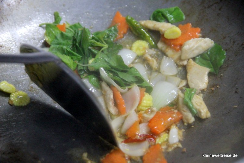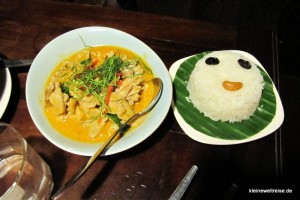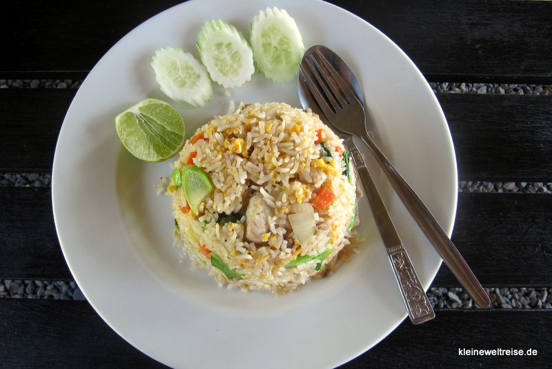 Fried Rice with chicken war regelmäßig unser Mittagessen. Ist leicht, geht schnell, macht satt, kostet nicht viel, einfach perfekt. Ebenfalls traditionell Thai, oft scharf und ziemlich gut: Das Curry mit unseren Lieblingsrichtungen Massaman und Panang.