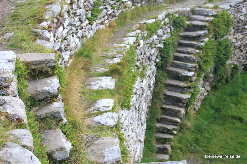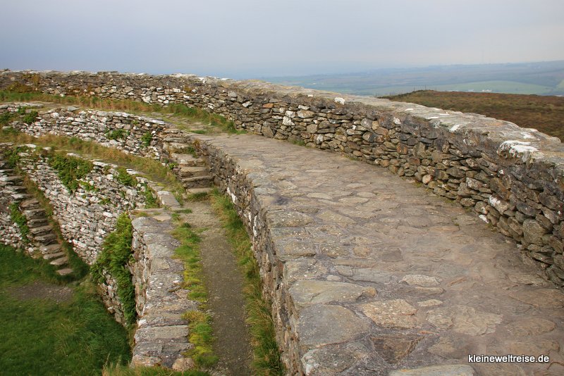 Das Rundfort auf dem Berg überblickt die Halbinsel Inishowen. Es wird auch „stone palace of the sun“ genannt, ich würde eher behaupten wir sind im Palast des Windes gelandet. Es ist so stürmisch, ich schaffe kaum die Kamera still zu halten.