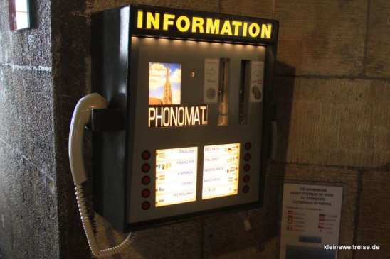 Dieser Automat hängt oben im Turm im Stephansdom. Über einen alten abgesägten Telefonhörer gibt es Audio-Guide-Infos zum anhören für 1 EUR. Eine schöne Erinnerung und Hommage an die Zeiten vor MP3s und Apps, hoffentlich bleibt diese Kiste da noch lange hängen.