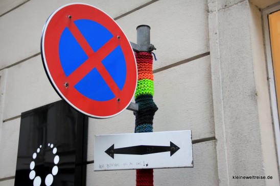 Auch eine schöne Kleinigkeit ist die Strick-Kunst oder das Guerilla Knitting. Das Halteverbot warm einpacken, hat was.