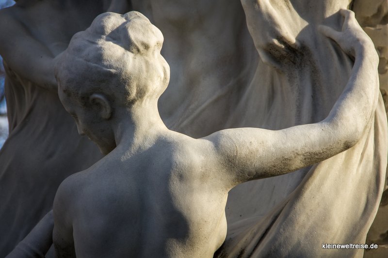 Das Denkmal des goldenen fiedelnden Strauß ist so eine Sache für sich, kann man mögen oder auch nicht. Das eigentlich Schöne ist die aus weißem Marmor gearbeitete Skulptur die den dekorierenden Rahmen für das goldene Männchen abgibt.