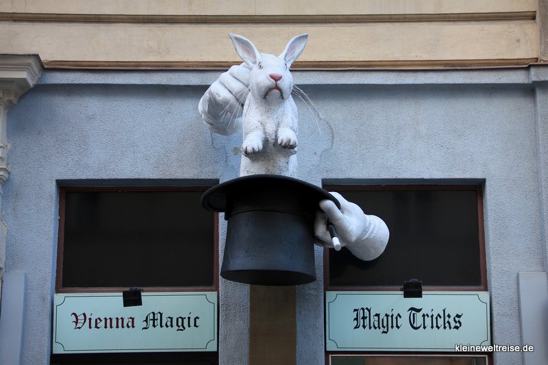 Beim Schlendern durch die Straße mit den sauber gestrichenen Häusern entdecke ich das Kaninchen. Ein Handschuh zieht es aus dem Hut, wie eine Skulptur an der Wand. Ich wäre zu gern in den Zauberladen unter dem Kaninchen gegangen, schade, dass Sonntag war.