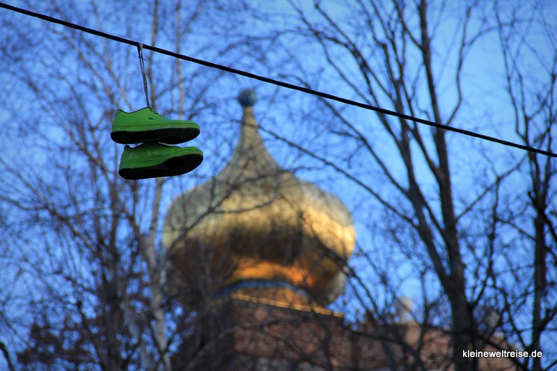 Shoefiti gibt es auch in Wien, hier vor dem Hundertwasserhaus. Habe mal versucht, nachzulesen ob das eine Bedeutung hat. Scheint es nicht zu haben – ist halt Streetart und zählt zu den netten Kleinigkeiten die immer mal wieder auffallen.